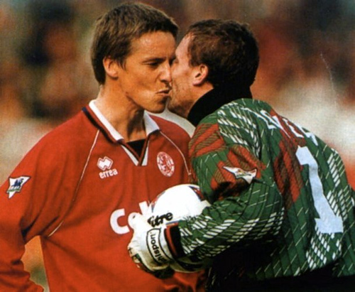 Die sexuellen Vorlieben der Fußballer sind schon eigen. Was da auf dem Platz getrieben wird, um Gefühle füreinander auszudrücken reicht von ganz zart bis ganz hart. Solange es den Jungs Spaß macht, sollte man sie aber nicht davon abhalten. Da soll noch jemand behaupten, dass Fußball kein Spiel der Liebe ist.